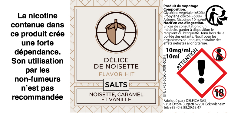 Saveur noisette, caramel et vanille - aux sels de nicotine