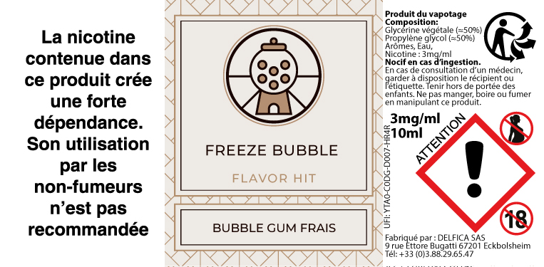 Freeze Bubble propose un arôme de bubble-gum frais.