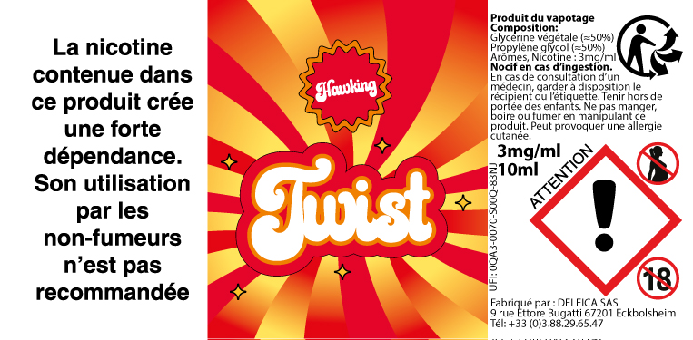 Hawking Twist est un e-liquide saveur ananas, fraise, orange et mangue - Frais.