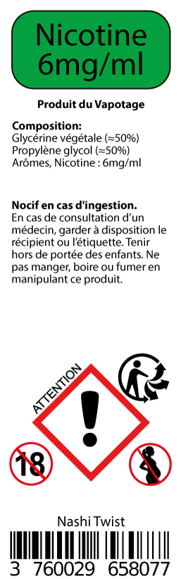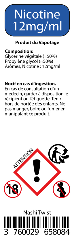 √ Disponible en flacon de 10ml en 0, 3, 6 et 12mg/ml de nicotine.