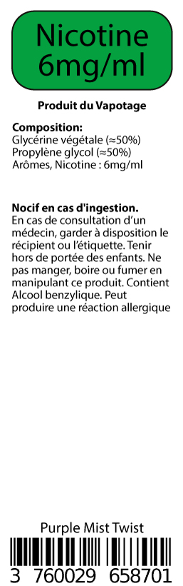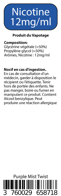 √ Disponible en flacon de 10ml en 0, 3, 6 et 12mg/ml de nicotine.
