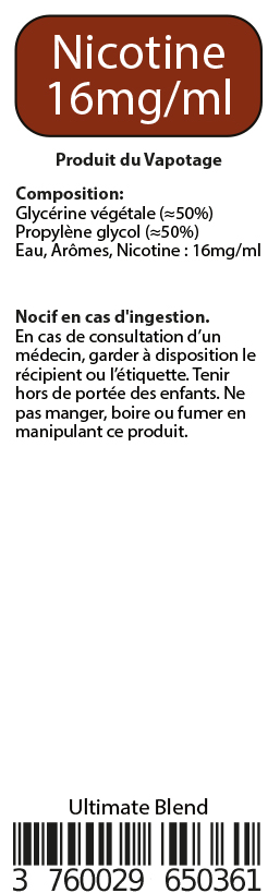 √ Disponible en flacon de 10ml en 0, 3, 6, 12 et 16 mg/ml de nicotine.